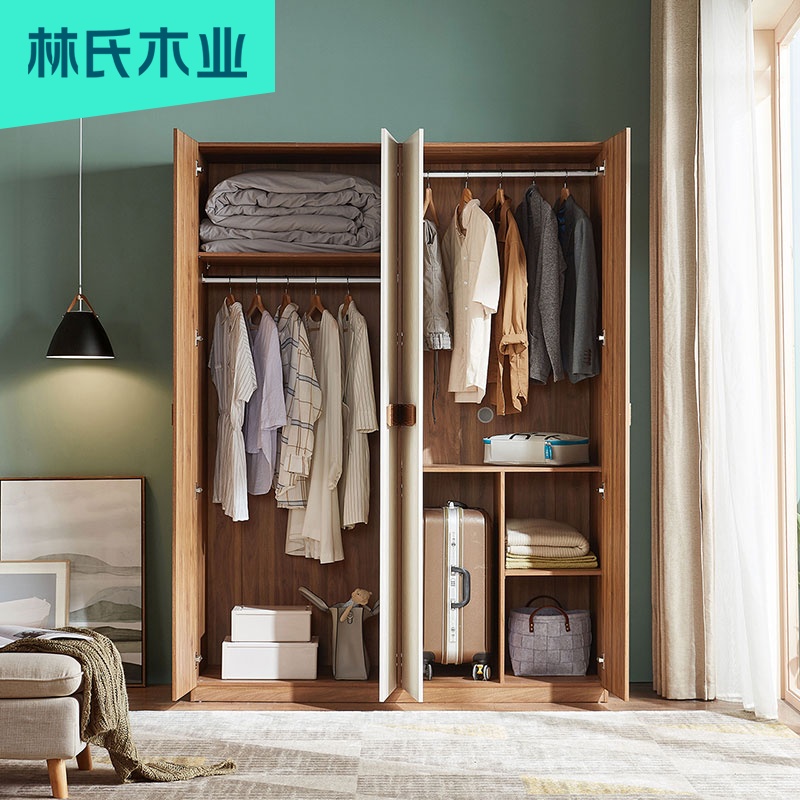 Lin's Wood Industry Four Doors Wardrobe Brief Modern Small Household Type Containing Clothes Overall Cabinet Economy Type Bedroom Provincial Space CP1D