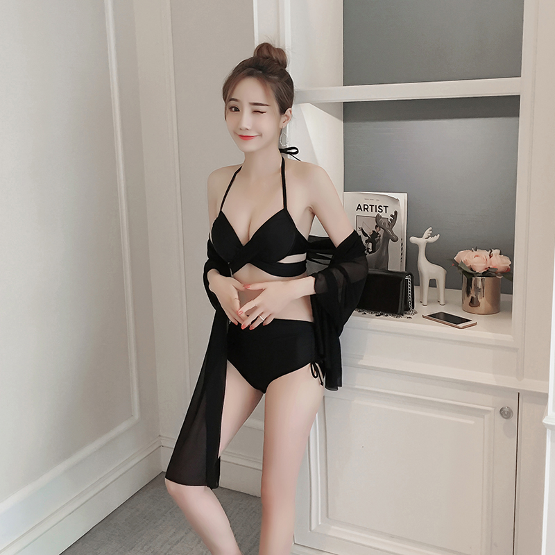 South Korea Ins Swimsuit Women's Style 2021 New Two-piece Three Sets Tide Bikini High Waist Display Slim and Slim Breasts