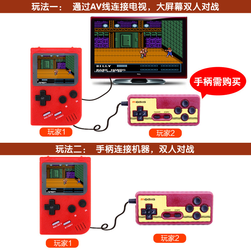 Mordee Q2 nostalgic pocket double AV game machine NES handheld rechargeable children's FC game PSP shaking sound with the same small red and white machine Tetris mini portable retro game machine