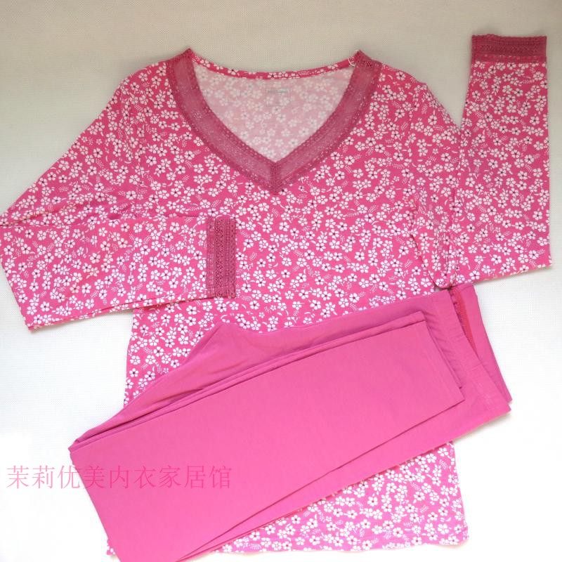 Haumen lingerie special cabinet Women's thin cotton Modale adhesive fiber V collar printed autumn clothes sanitary pants suit