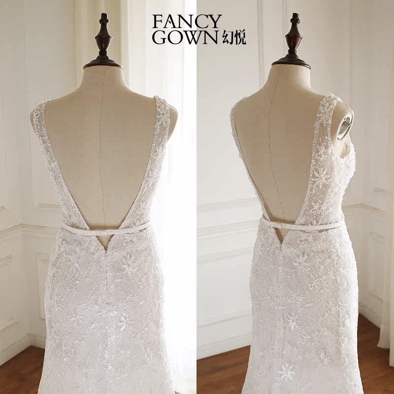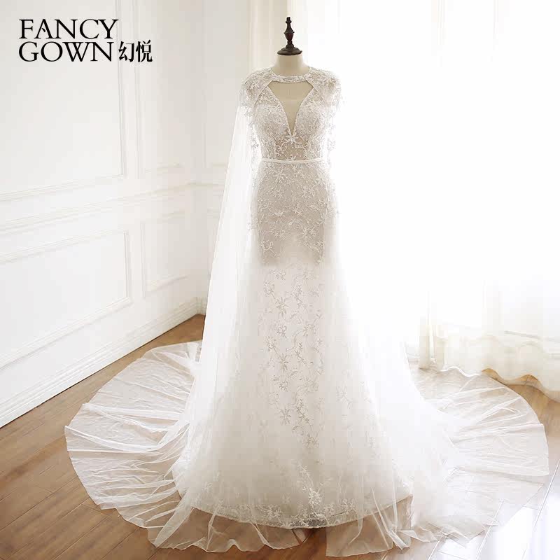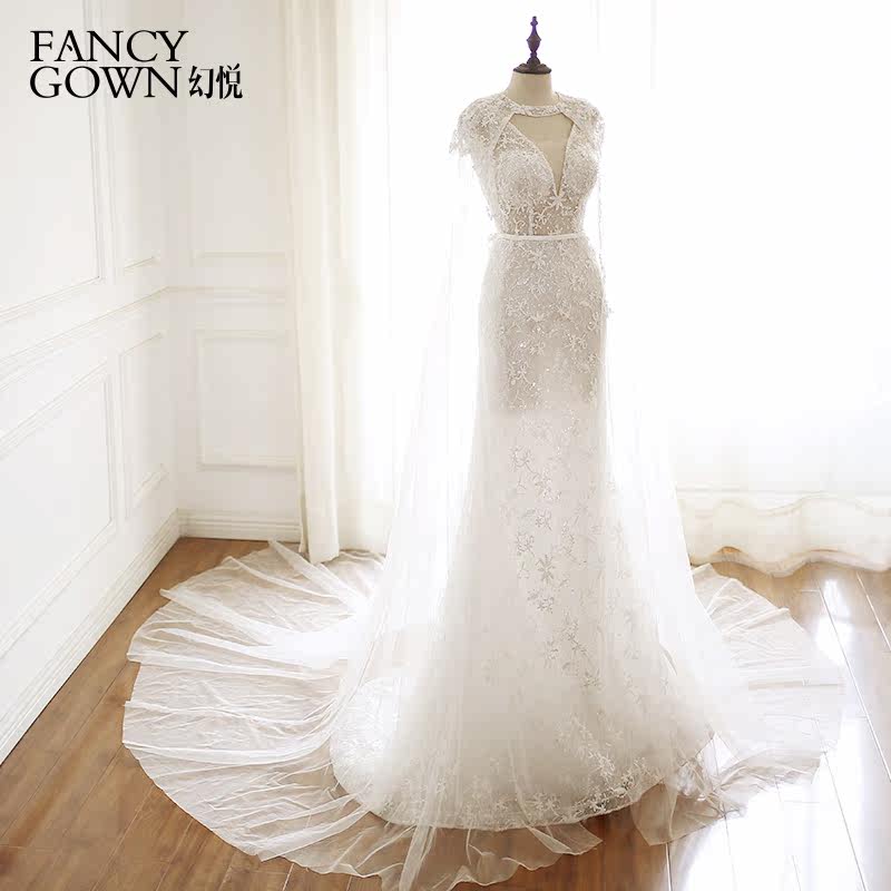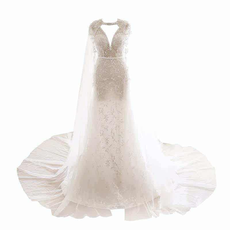 Magic Yue-new fishtail activity shawl shoulder deep V halter sexy fashion shawl small tail light wedding lace