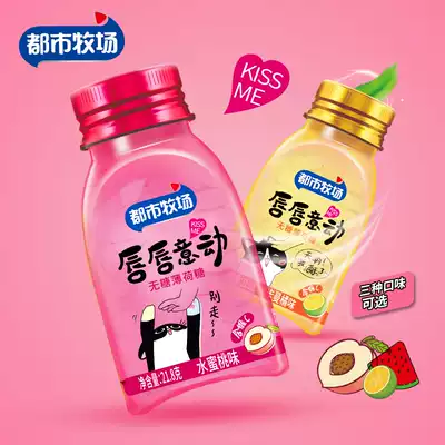 City Ranch Sugar Free Mint Candy Cool Candy Small Red Bottle Portable Sugar Watermelon Peach 21 8G * 6 bottle