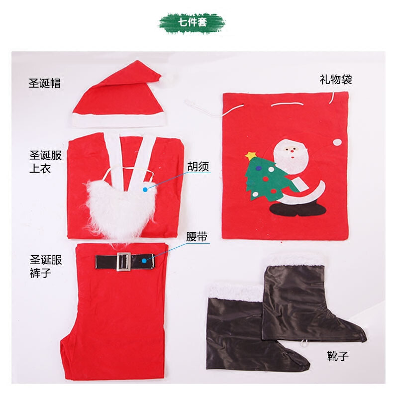 Gold velvet elderly clothing 7-piece set (men's) with gift bag, boots, gold velvet elderly clothing (women), non-woven clothing for the elderly (women), Christmas clothing (men's), Christmas clothing (women's)