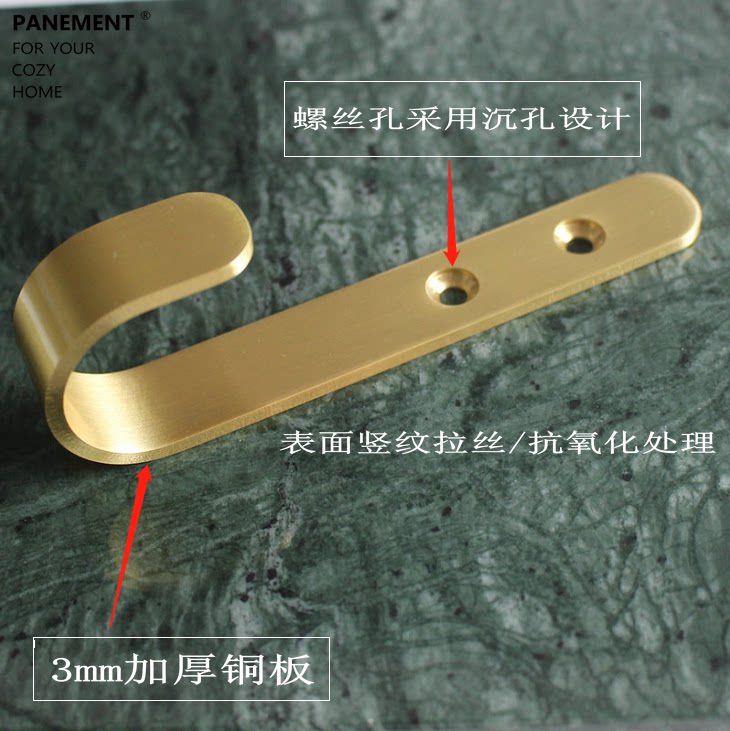 Nordic Minimalist Brass Hook Wall Trim Creative Cloister Hood Hook Hsugen Door Rear Pure Copper Hook Nail Free