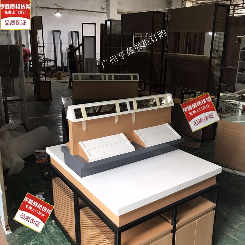 Boutique Wood Grain Iron Art Glasses Shelf Glasses Cabinet Display Cabinet Middle Island Short Cabinet Display Cabinet Guangzhou Factory Customized