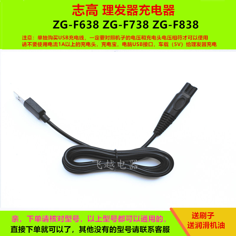 Zhigao baby hairdresser charger USB charging line ZG-F638 F738 F668 F838 power cord