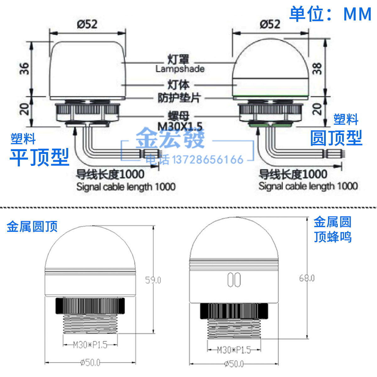 Waterproof warning light LED tricolour lamp signal light small warning machine tool layer three-color flat top dome TL-BX52