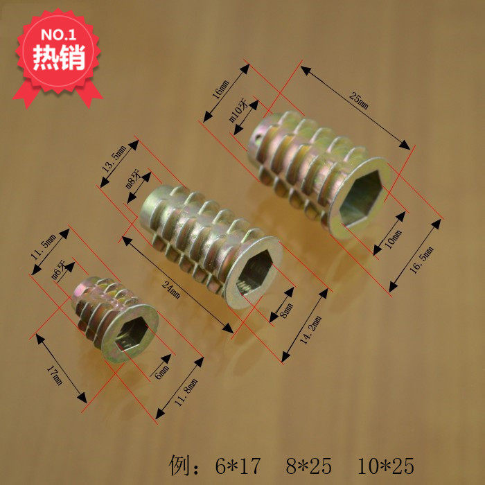 Zinc alloy countersunk head with internal and external hexagon socket nut t ladder nut furniture embedded nut embedded nut