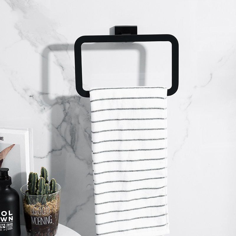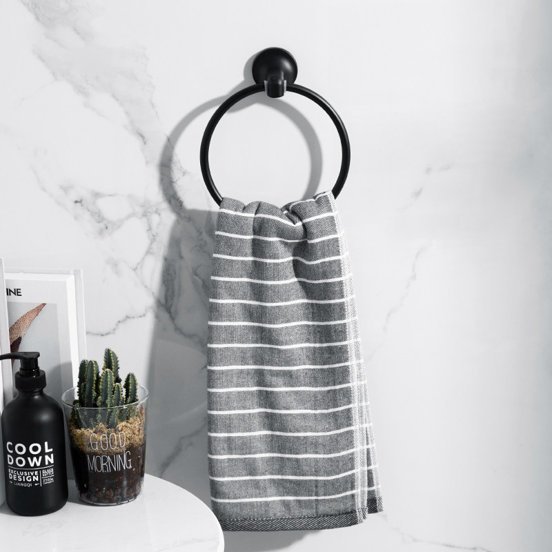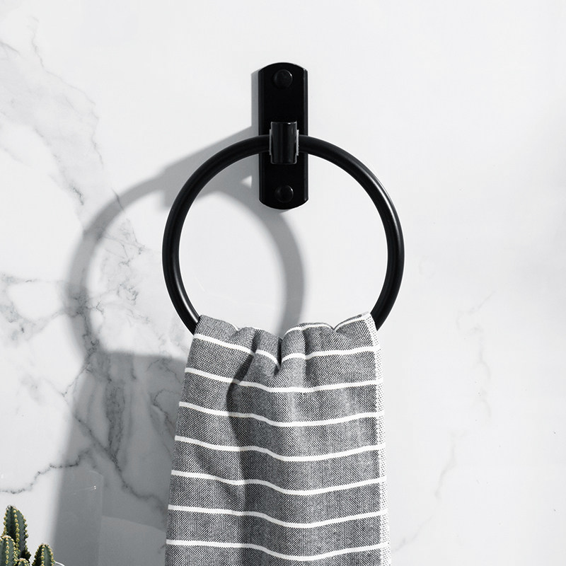 Black towel ring Nordic round towel rack Towel ring rack Towel hanging ring Hand towel hanging ring free hole