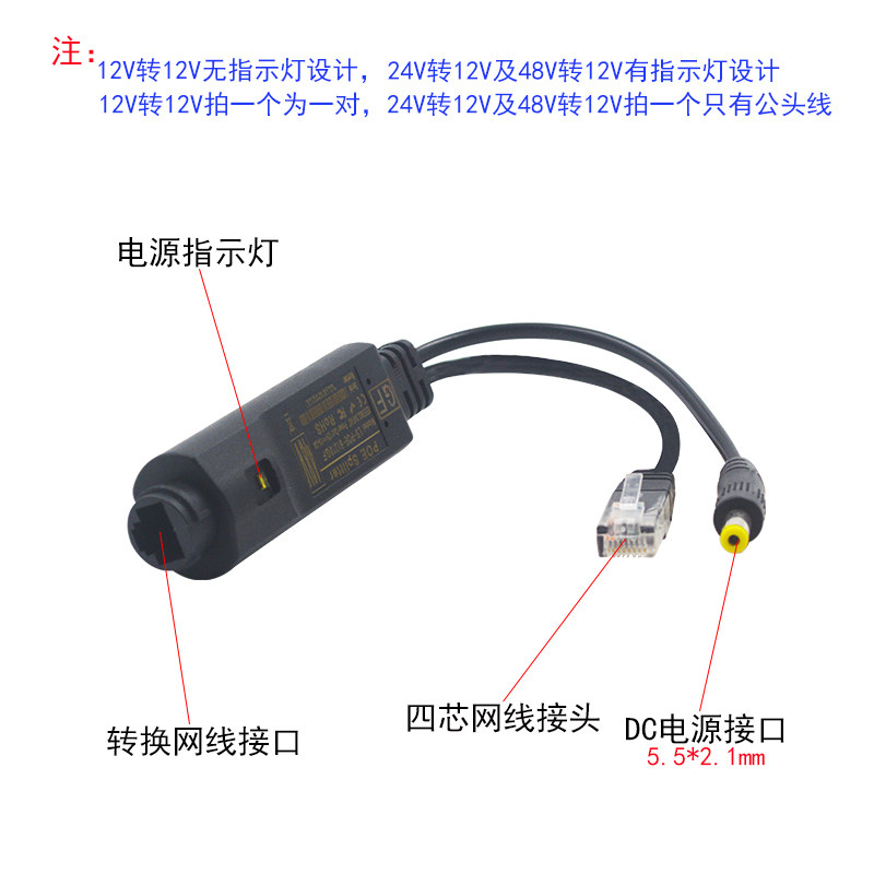 Hot selling monitor waterproof poe separator 24V synthetic 48V 48V 12V Internet camera switch Power supply module