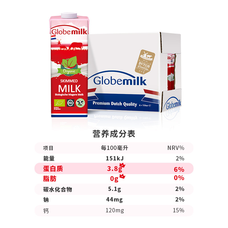 (Imported from the Netherlands)Hegao organic skimmed pure milk 1L*6 boxes 3 8 excellent milk protein breakfast milk