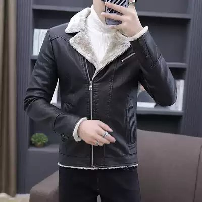 Leather leather clothing men short 2021 new leather wool one plus velvet Korean tide handsome slim body warm thick coat