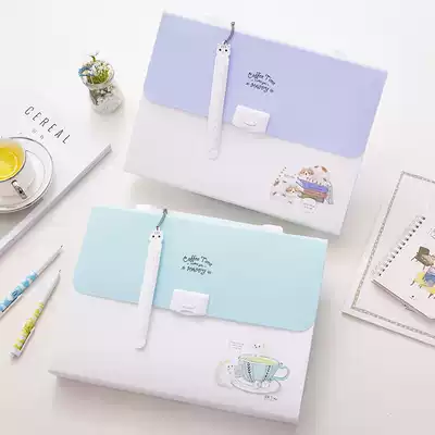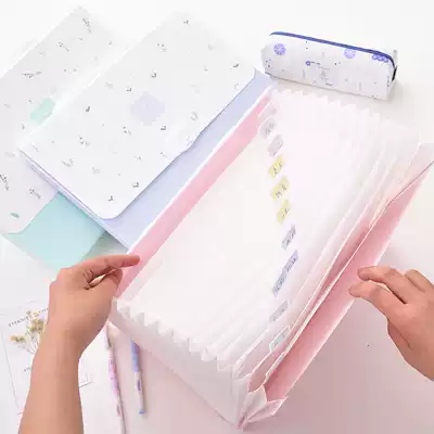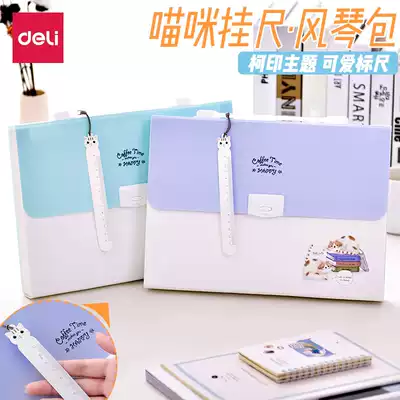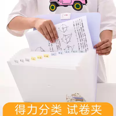 Del folder multi-layer student with classification data book paper storage box a4 insert test paper bag invoice file folder color cartoon cute organ bag test paper holder carry-on file bag