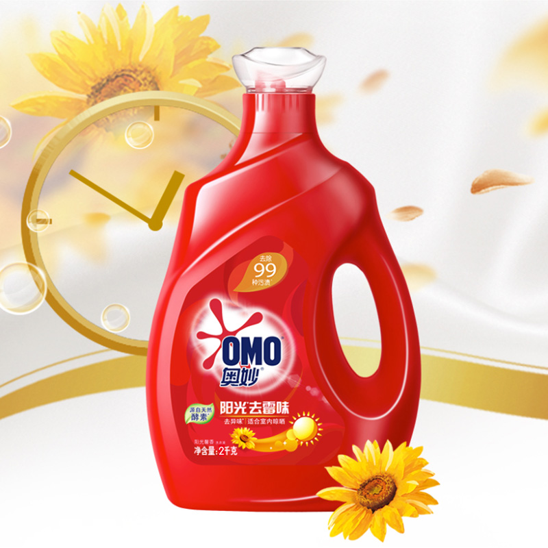 OMO sunshine to mildew laundry liquid 2KG sunshine fragrance enzyme laundry liquid to deodorize indoor drying