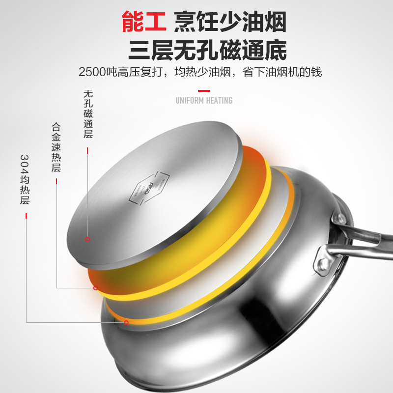 Asda 304 stainless steel pan Non-stick pan Household omelette pancake steak pot Induction cooker Gas stove