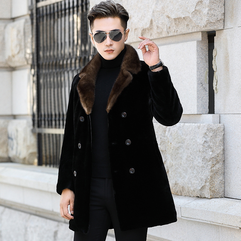 Hyenen original eco-fur integrated male sheen cut down medium long version of water mink fur leather clothing male thickened fur coat