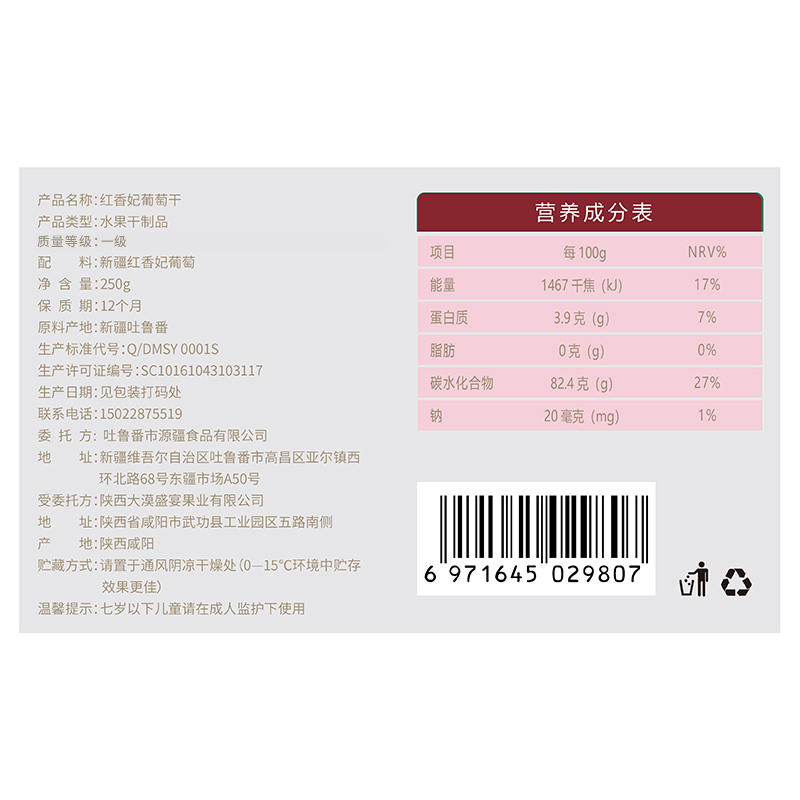 Honey's Turpan Super Large Washing Red and Princess Raising 500g Xinjiang Special Grade Grape Dry