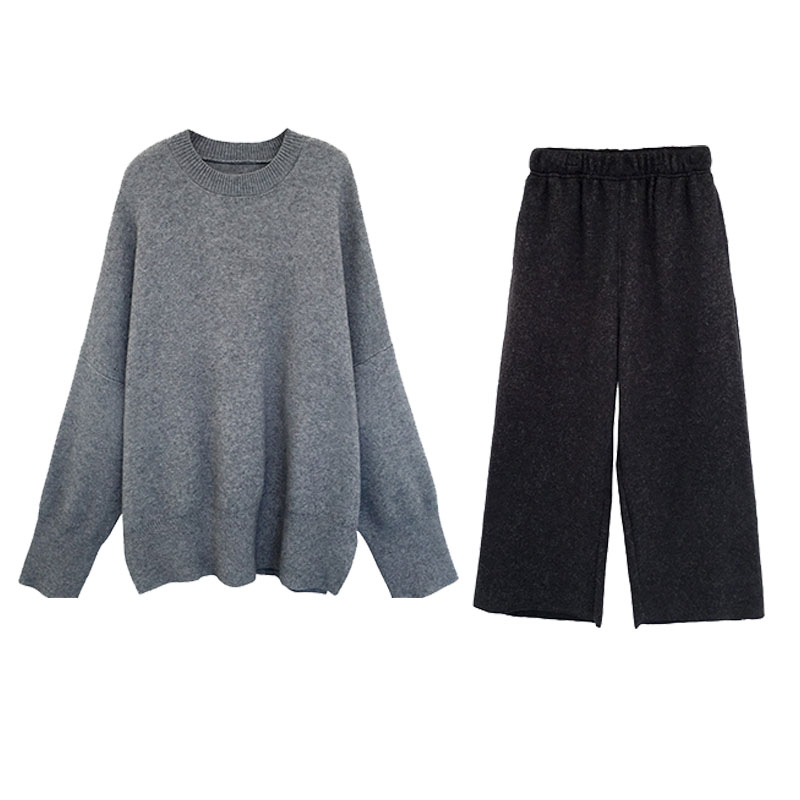 8055 pink sweater almond pants two-piece style suit 8055 grey sweater black pants two-piece suit 8055 meters white sweater dark grey pants two-piece suit 8309
