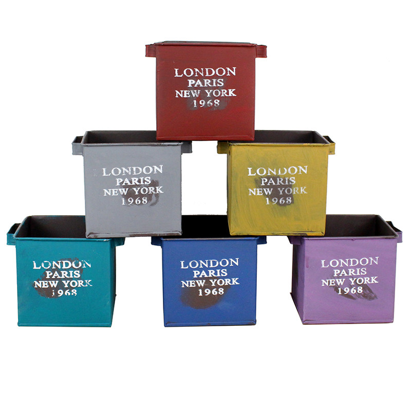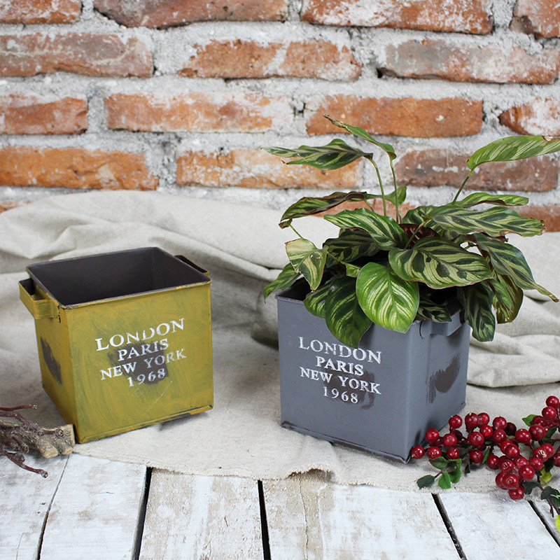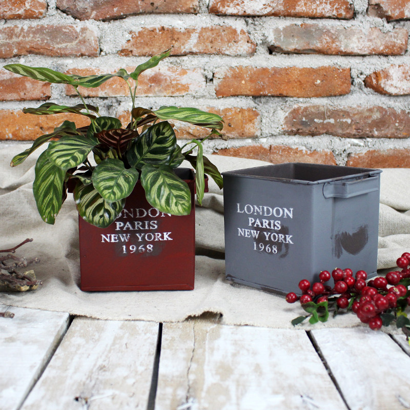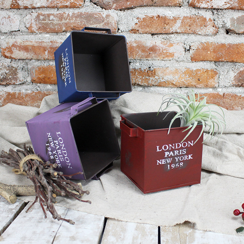 Creative square retro old wind iron tube Iron art dry flower bucket Multi-meat flower pot Flower decoration storage ornaments