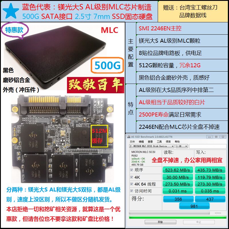 Special Magnesium eTLC Large S MLC chip manufacturing 256G 500G SATA3 interface SSD solid state drive