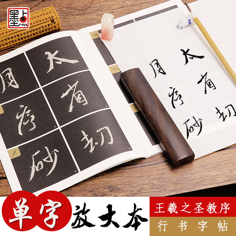 The enlarged single word of the sacred order Wang Xizhi amplifies this colorful calligraphy copybook line of calligraphy and the sacred order of Wang Xizhi