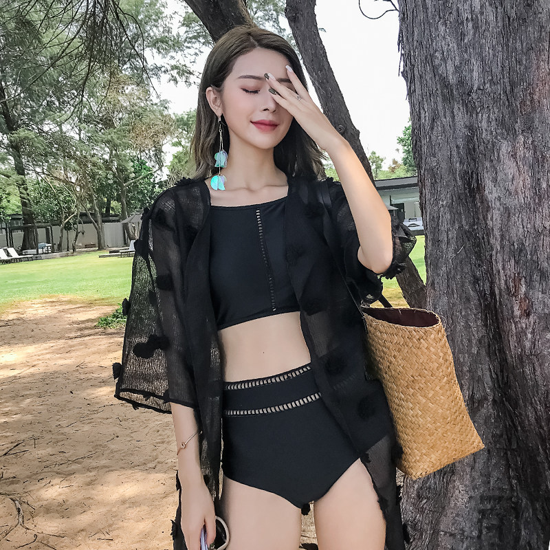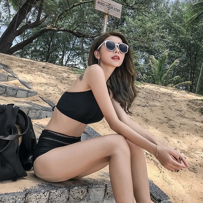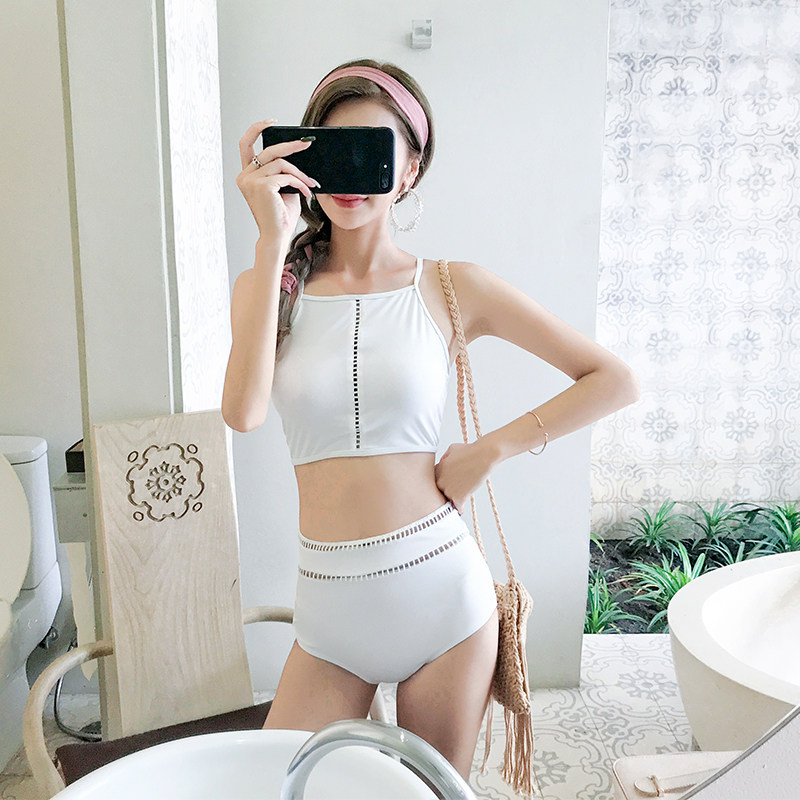 South Korea's small breasts gather bikini white Little Qing New conservative student cover-up, two three-piece swimsuit women