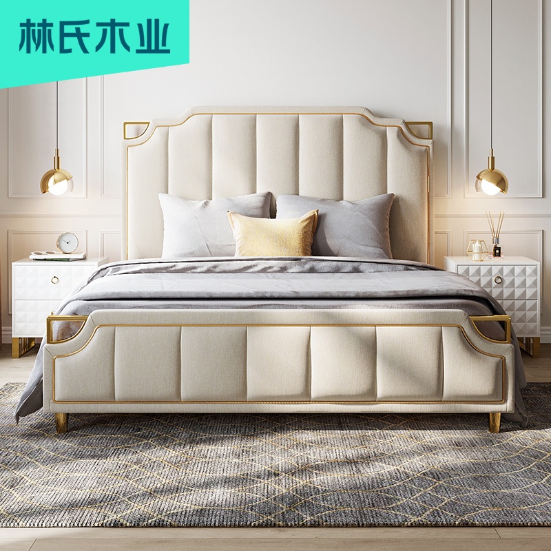 (Low bed head imitation cotton and linen)beige)RAX3A-A bed bottom without storage bed (without bedding) (Low bed head imitation cotton and linen) Beige) RAX3A-A bed bottom without storage bed