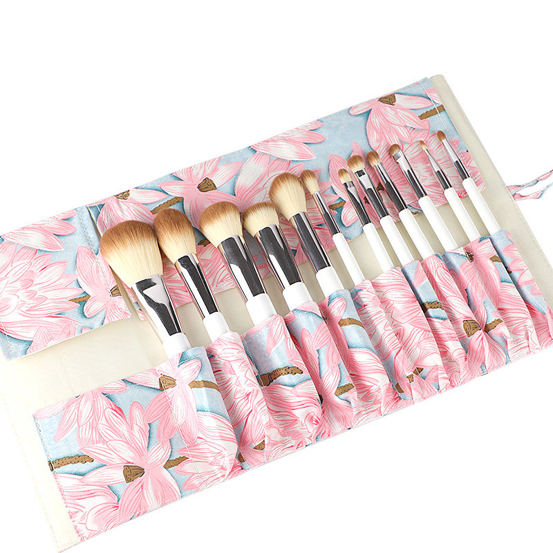 Ronel lotus series makeup brush storage bag Brush bag makeup bag 12 holes makeup tool bag Soft cloth bag