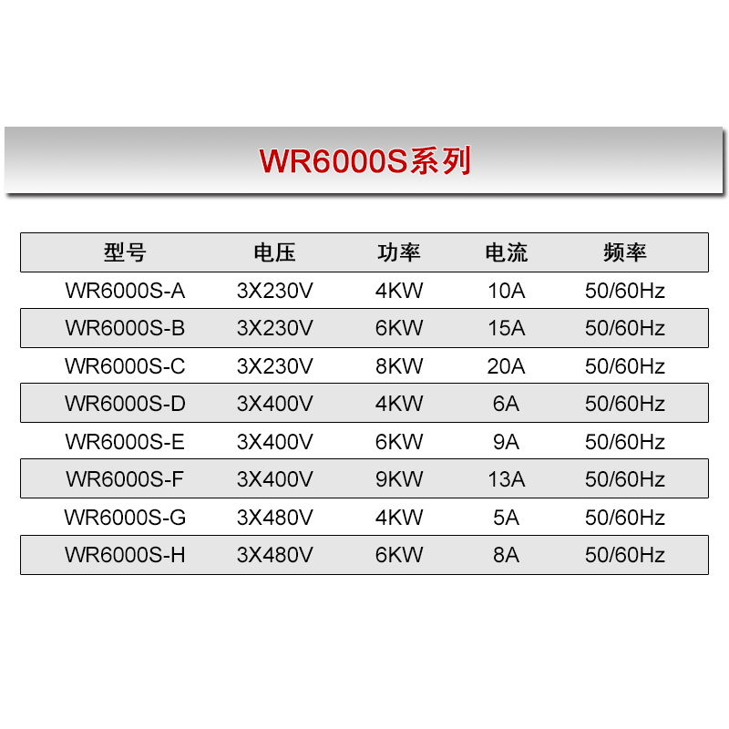 WR6000L 3 * 400V 11KW (without temperature-controlled) WR6000L 3 * 400V 11KW (with temperature-controlled) WR6000L 3