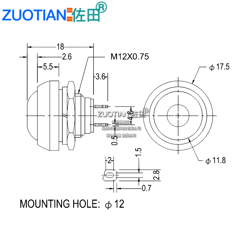 Small waterproof self reset button switch round lock-free button PBS-33B black and white yellow orange blue green red 12mm