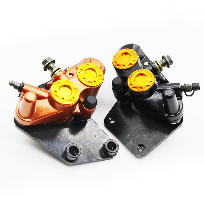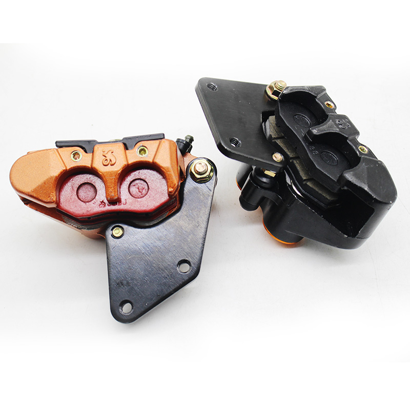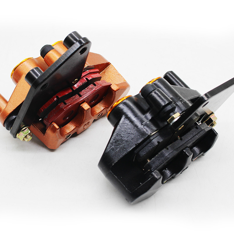 Orange left disc painstah down the pump an orange right disc brake down the pump a black left disc brake down the pump a black right disc brake down the pump.