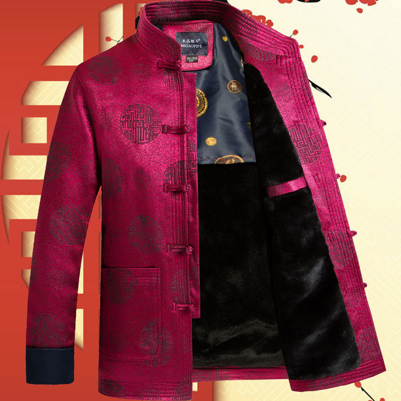 Old man Tang Men Cotton Cotton Set in Old Grandfather Winter Harding Cotton Wedding Banquet Life New Year Clothes