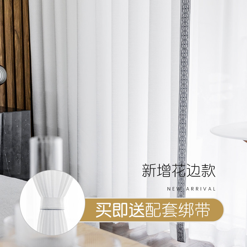 Curtain screen curtain translucent impermeable human screen Bay window white yarn Balcony yarn Living room bedroom semi-shading window screen white yarn curtain