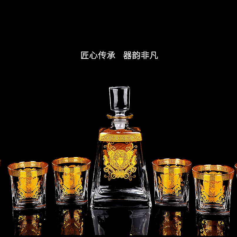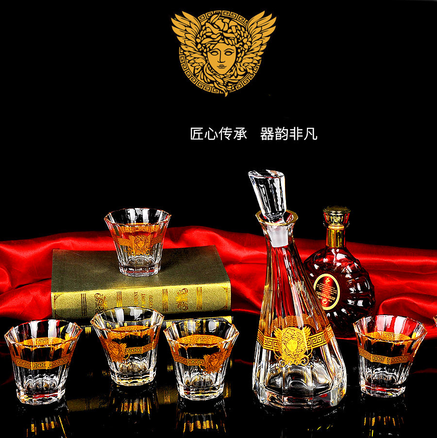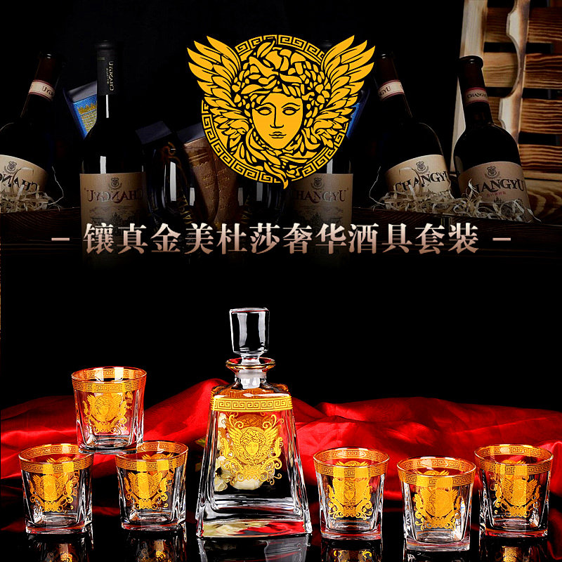 Inlaid real gold Medusa lead-free crystal wine set one inlaid real gold Medusa lead-free crystal wine set two inlaid real gold Medusa lead-free crystal wine set three inlaid real gold Medusa lead-free crystal wine set suit four