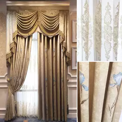 American chenille curtain European style modern living room bedroom study floor-to-ceiling curtain finished blackout floating window screen embroidery