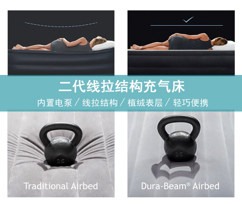 INTEX luxury backrest inflatable bed with electric pump 2 generation air cushion bed double step up thickened inflatable mattress