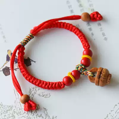 Pure handmade red rope hands, men and women, children, children, baby baby, baby, peach carving peach basket
