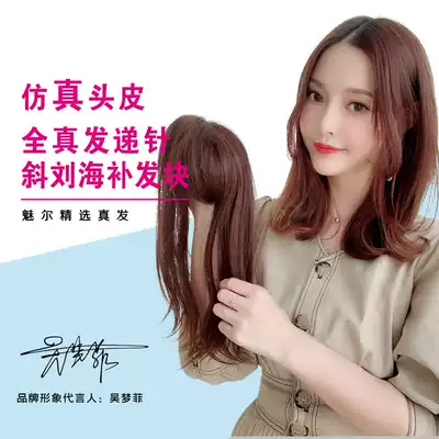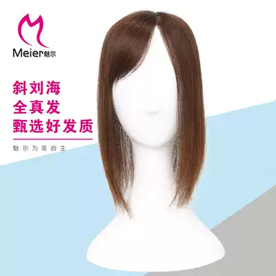 New needle-handed oblique Liuhai hair patch real hair head patch seamless invisible forehead cover to cover white hair wig patch