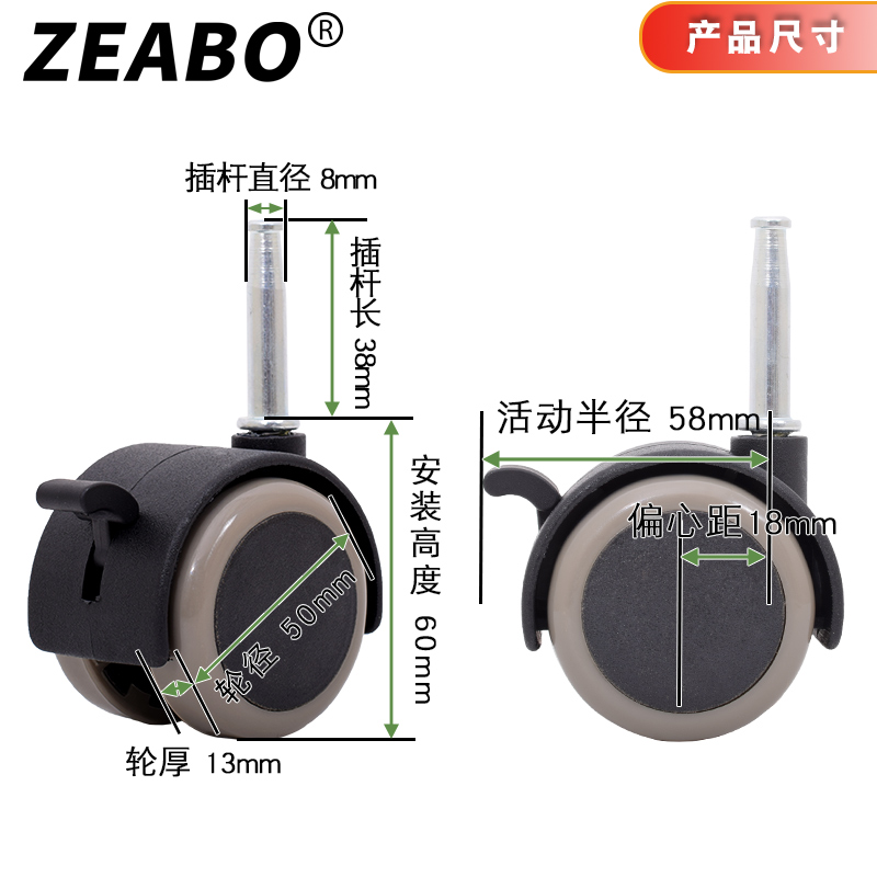 4-pack baby bed casters Universal wheels Brake plug wheel roller roller Children's bed accessories 2-inch roller Good child