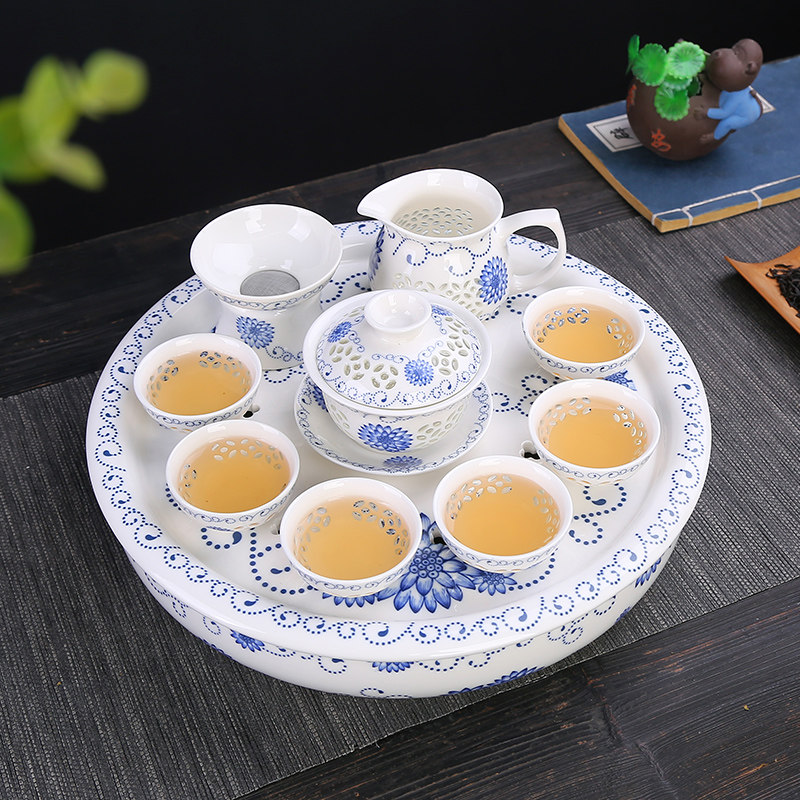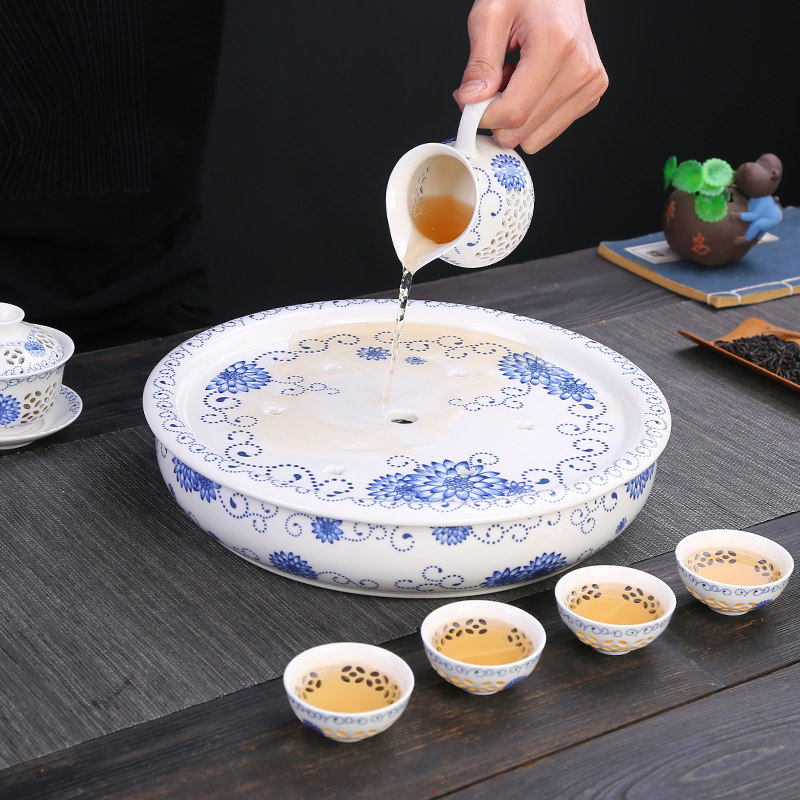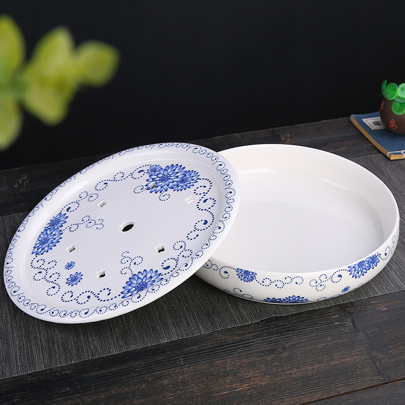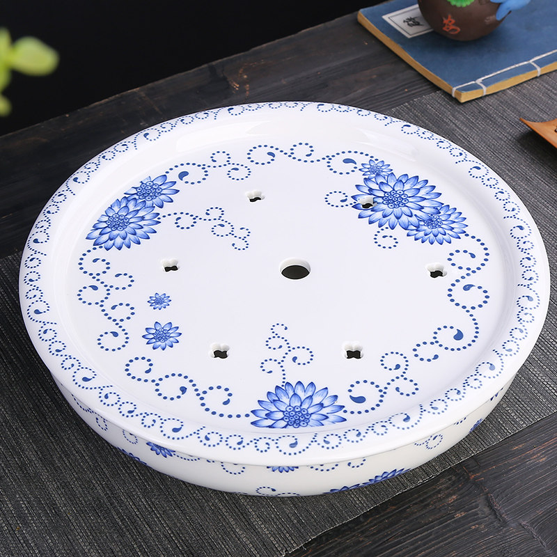 Blue and white porcelain dry tea tray (single tray) 31cm Blue and white porcelain dry tea tray (with exquisite tea set) Blue and white porcelain dry tea tray (single tray) 26cm Peony dry tea tray (single tray) 31