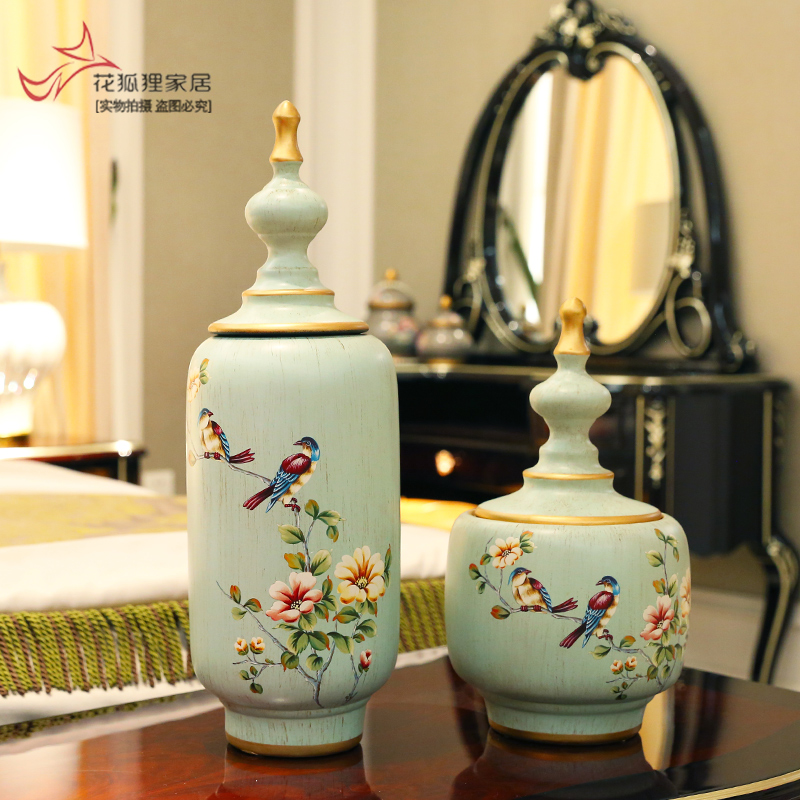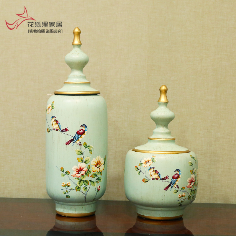 American retro ceramic storage tank Creative home Living room Xuan Guan Wine Cabinet Decorations Pendulum Pieces Jo Relocation New Residence Gift