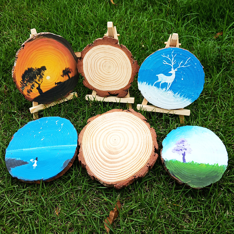 Round Wood Sheet Diy Material Handmade Log Sheet Painting Nursery Handpainted Year Round Wood Painting Year Round Wood Sheet Decoration