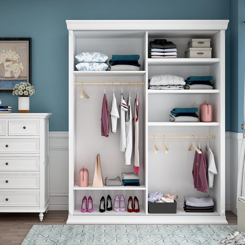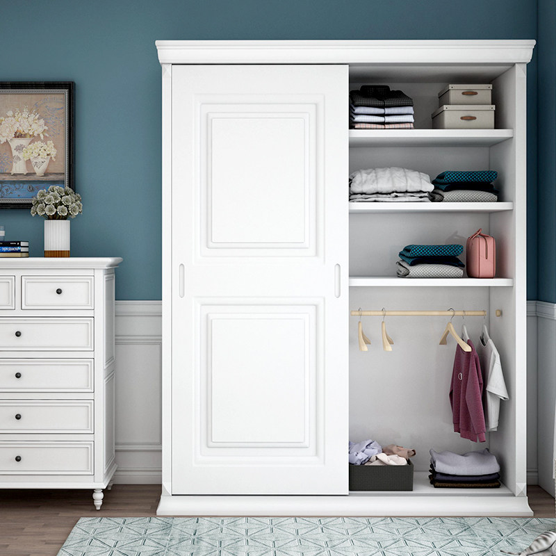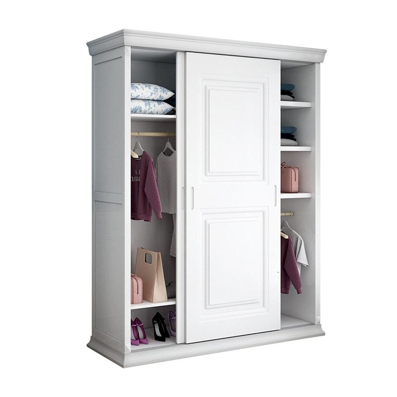 American solid wood sliding door wardrobe bedroom simple modern furniture white wardrobe storage locker custom