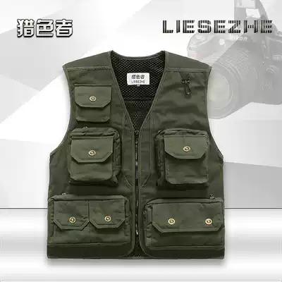 Spring and autumn fine cotton canvas journalist vest men's and women's multi-bag photography image outdoor leisure fishing dual-use vest waistcoat