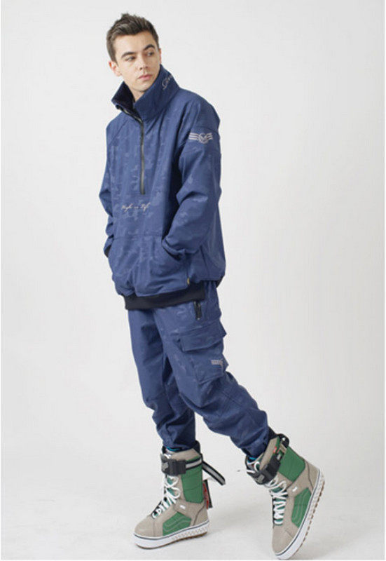 Special price Korean ski pants shrink leg pants male and female veneer waterproof wind abrasion resistant and slim large pocket blue