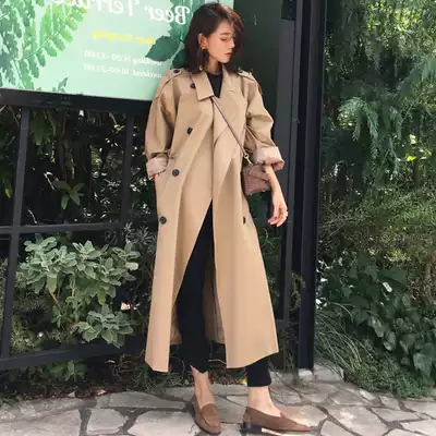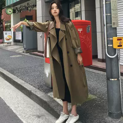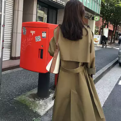Hong Kong counter 2021 new knee military green trench coat women double breasted loose thin long version coat coat tide