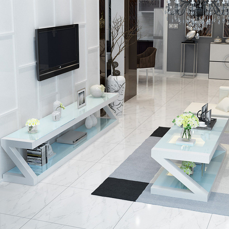 Tempered glass TV cabinet coffee table combination set Z-type modern minimalist small household economical living room European fashion