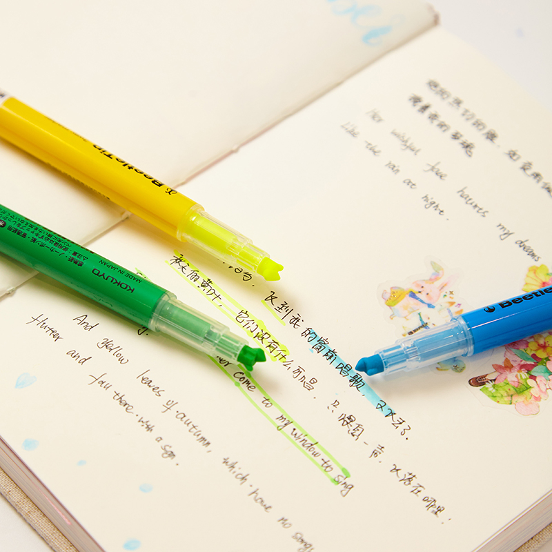 Japan KOKUYO National Renowned Beetle Fluorescent Pen students use the Focus Mark Pen Multifunction Mark Pen Color