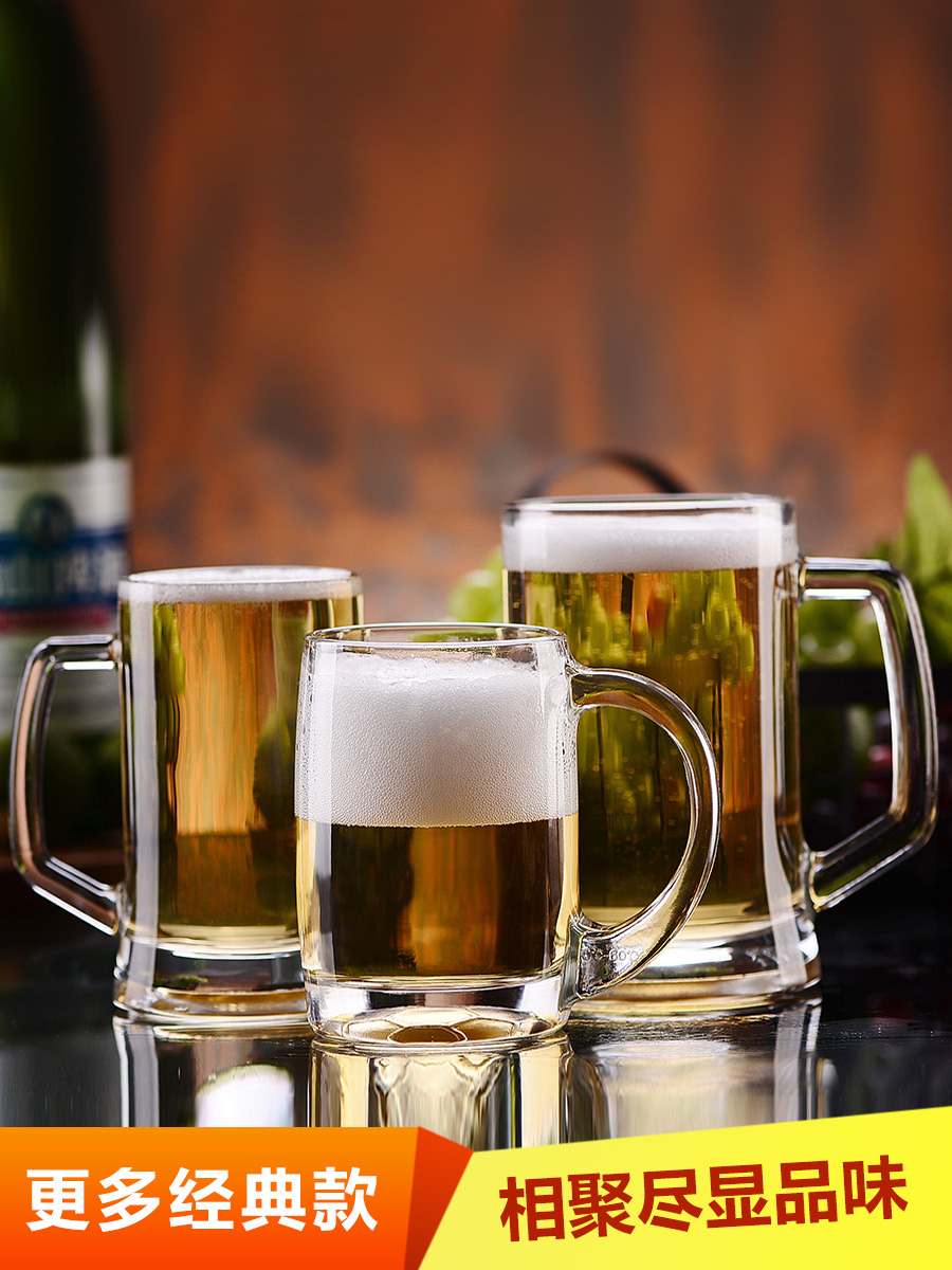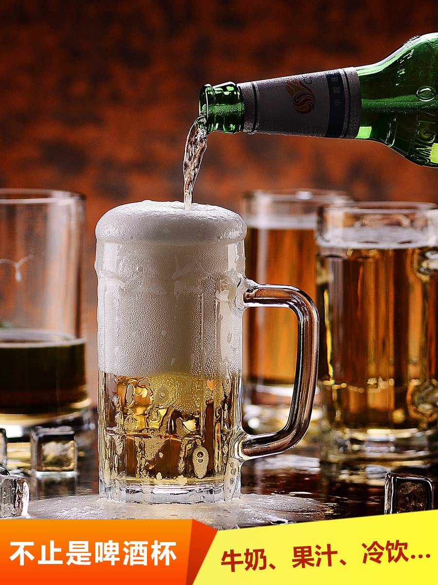Thickened household glass beer cup, zaqi cup, large pineapple cup, tropical resistant handle, large capacity tea drinking cup