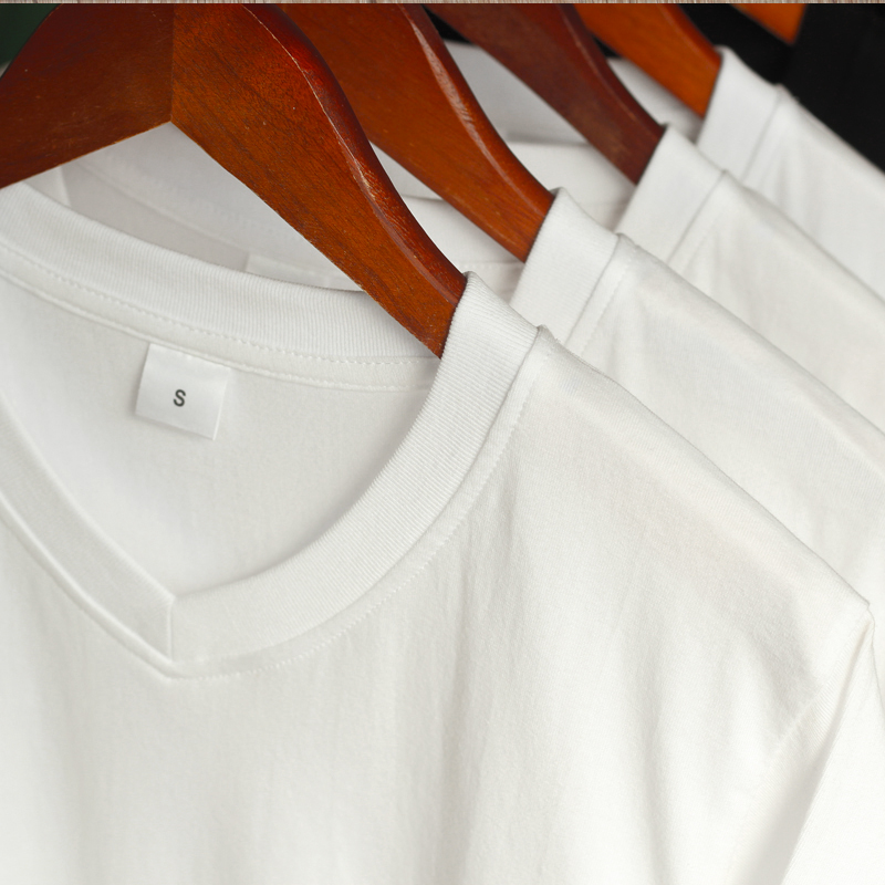 (Two-piece pack) 200g Japan heavy thick cotton V-neck short-sleeved basic bottoming shirt T-shirt men's and women's T-shirts